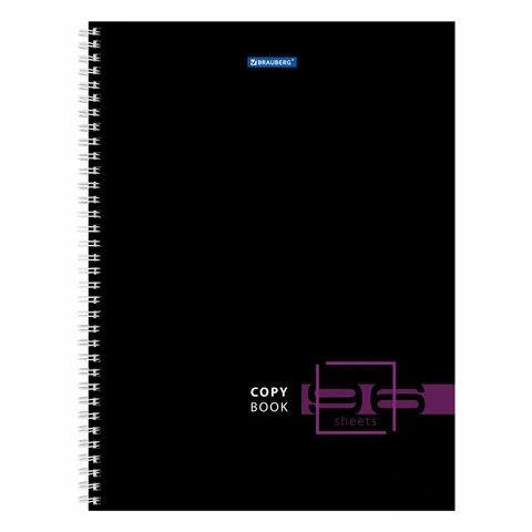 Тетрадь А4, 96 л., BRAUBERG, гребень, клетка, глянцевый лак, 'Dark', 404060
