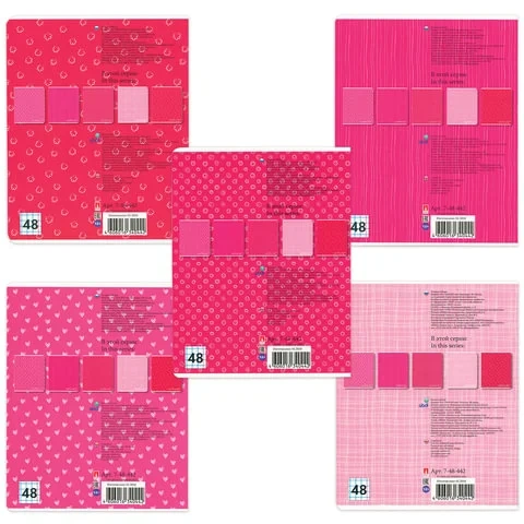 Тетрадь А5, 48 л., АЛЬТ, скоба, клетка, глянцевый лак, 'FRESH - РОЗОВАЯ' (5 видов), 7-48-442