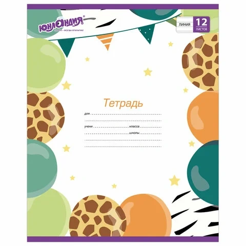 Тетрадь 12 л. ЮНЛАНДИЯ линия, обложка картон, 'ЕРАЛАШ', 105633