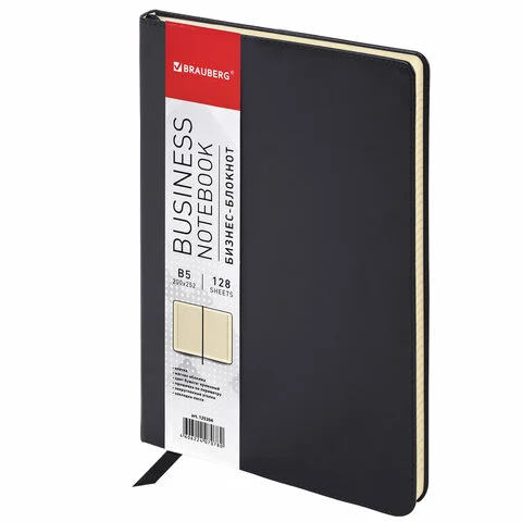 Тетрадь Brauberg Income черная, A4, 128 листов, в клетку, на сшивке, искусственная кожа