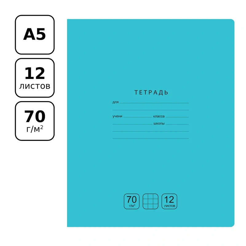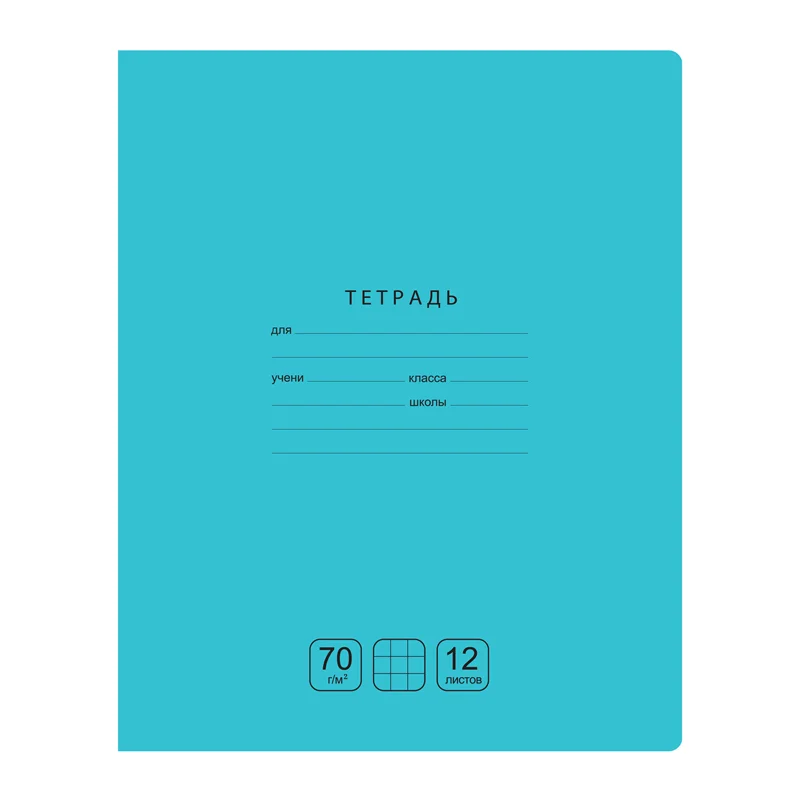 Тетрадь 12л., клетка BG 'Отличная', бирюзовая, 70г/м2