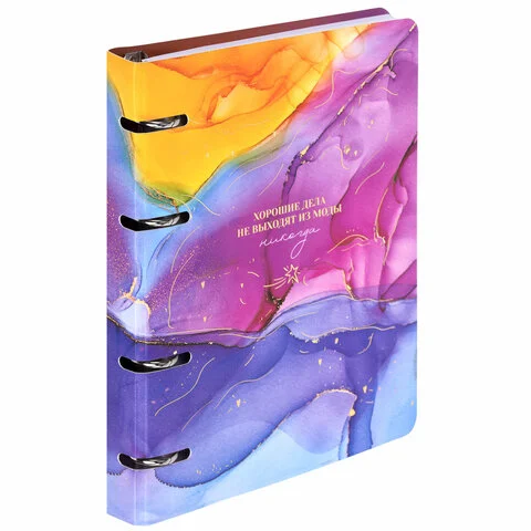 Тетрадь на кольцах А5 160х212 мм, 120 листов, картон, фольга, клетка, BRAUBERG, 'Liquid art', 404738