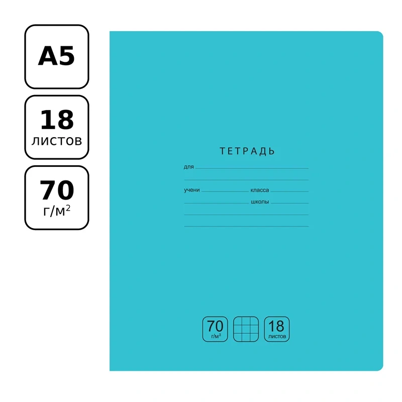 Тетрадь 18л., клетка BG 'Отличная', бирюзовая, 70г/м2