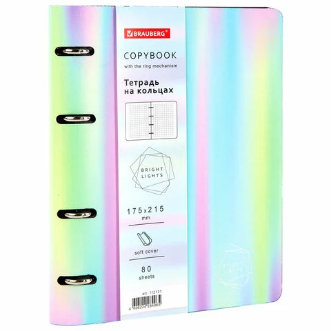 Тетрадь на кольцах А5 (180х220 мм), 80 листов, под кожу, клетка, тиснение фольгой, BRAUBERG VISTA, G