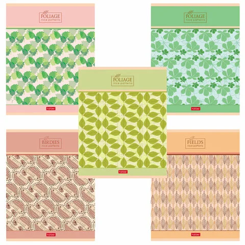 Тетрадь А5, 96 л., HATBER скоба, клетка, обложка картон, тиснение, 'Паттерн' (5 видов), 96Т5тВ1