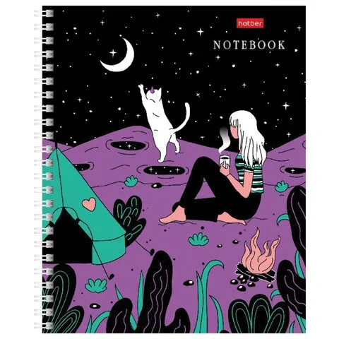 Тетрадь А5, 80 л., HATBER гребень, клетка, обложка картон, 'Дотянуться до небес' (4 вида в спайке),