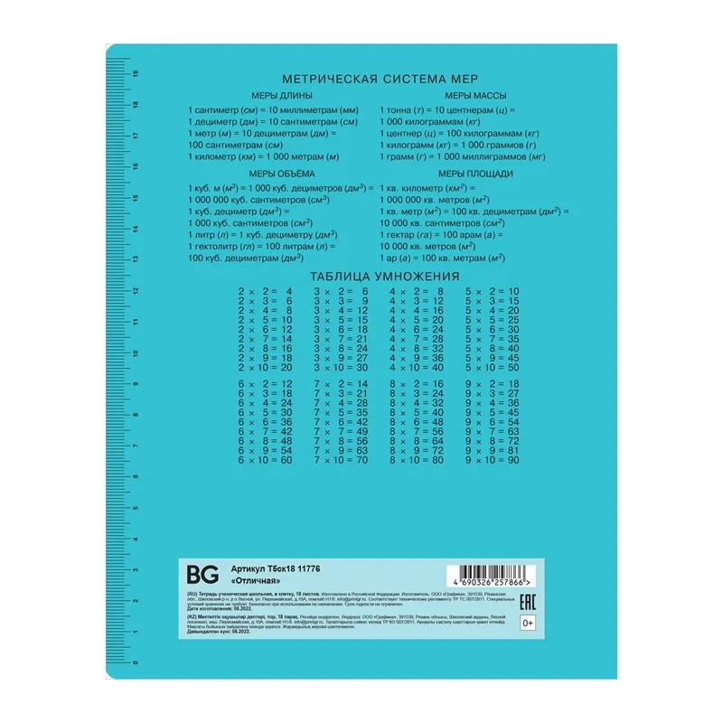 Тетрадь 18л., клетка BG 'Отличная', 70г/м2