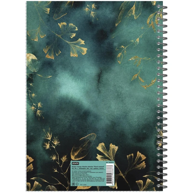 Бизнес-тетрадь А4 96л Attache Selection Floral клет,спираль,мел.карт,зелен