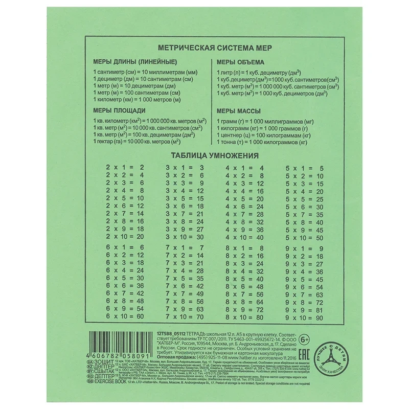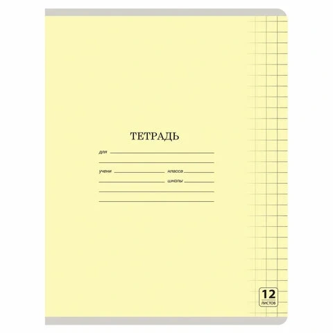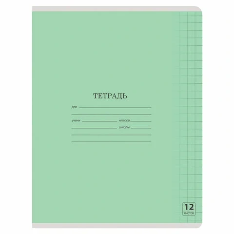 Тетрадь ЗЕЛЁНАЯ обложка 12 листов HATBER, офсет, крупная клетка с полями, 12Т5B8 05112, T058091