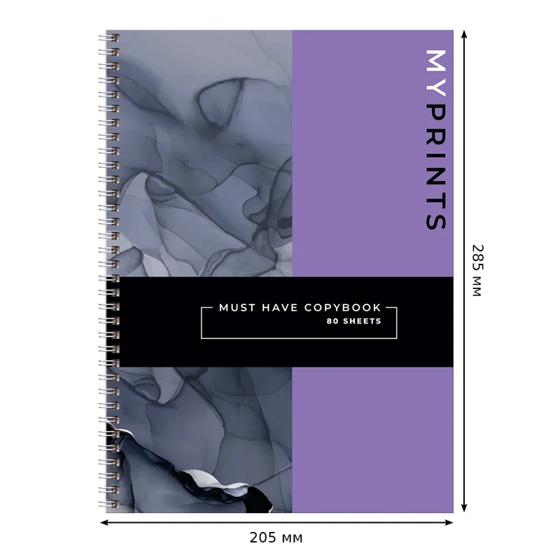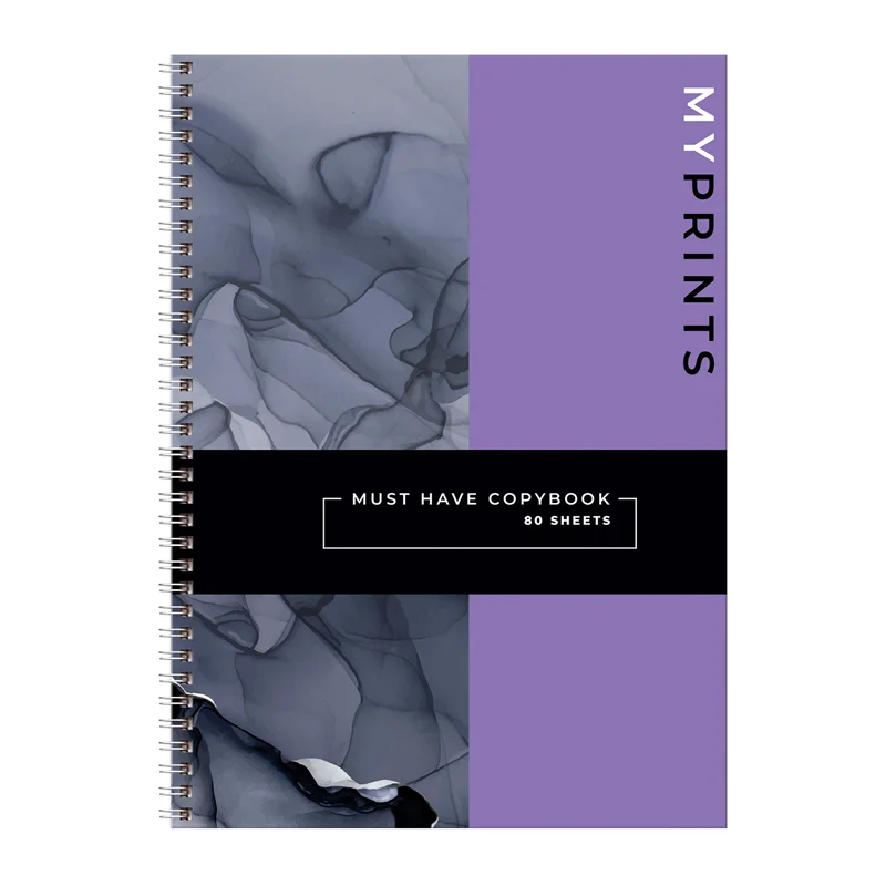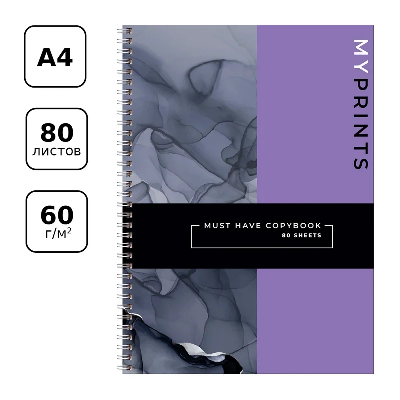 Тетрадь 80л., А4 клетка на гребне BG 'My prints', матовая ламинация, твердая обложка