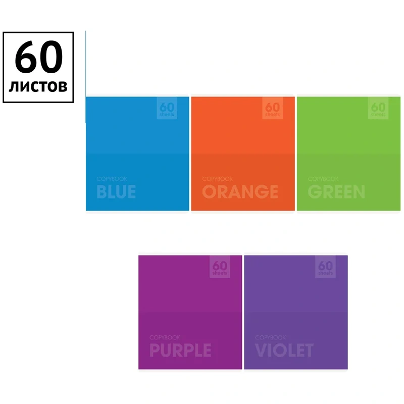 Тетрадь 60л., А5, клетка ArtSpace 'Моноколор. Яркие цвета'