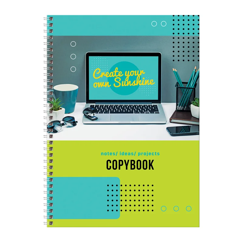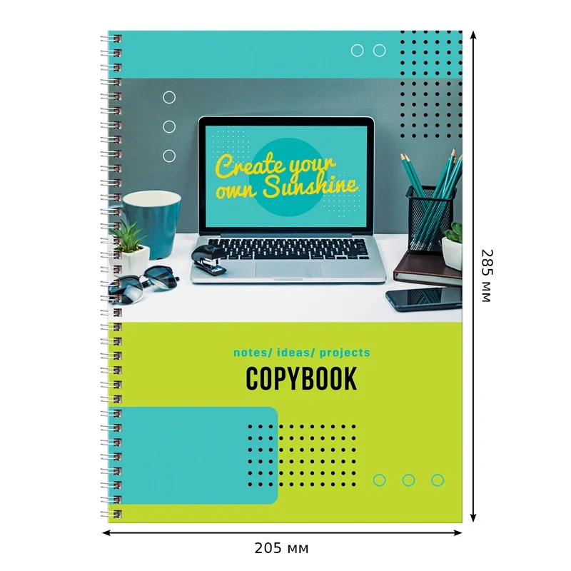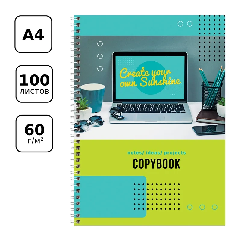 Тетрадь 100л., А4 клетка на гребне BG 'Рабочее настроение', глянцевая ламинация, твердая обложка