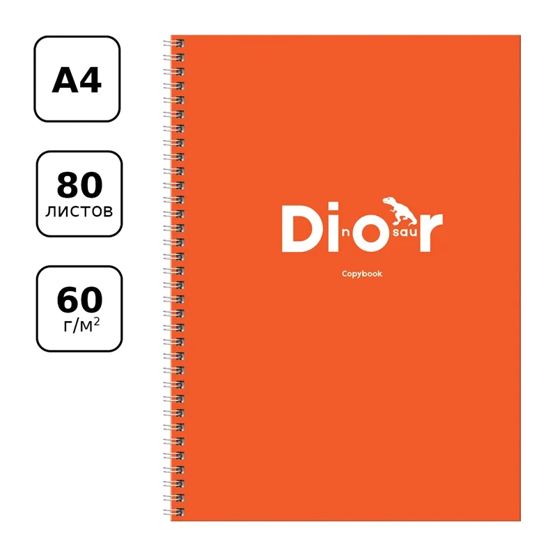 Тетрадь 80л., А4 клетка на гребне BG 'Dinozaur', глянцевая ламинация, твердая обложка