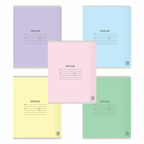 Тетрадь 12 л. ЮНЛАНДИЯ КЛАССИЧЕСКАЯ, крупная клетка, обложка картон, АССОРТИ 5 видов, 105648