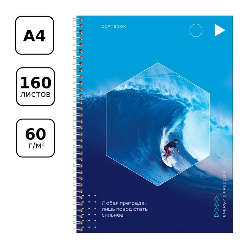 Тетрадь 160л., А4 клетка на гребне BG 'Energy', глянцевая ламинация, твердая обложка