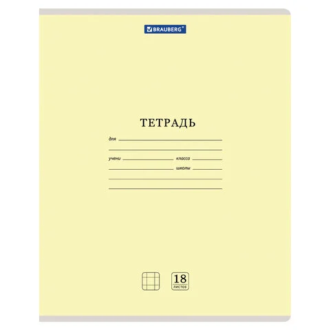 Тетрадь 18 л. BRAUBERG КЛАССИКА NEW клетка, обложка картон, ЖЕЛТАЯ, 105696