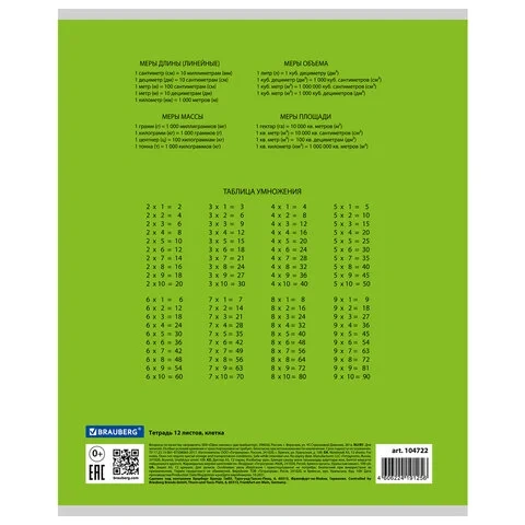 Тетрадь 12 л. BRAUBERG КЛАССИКА, клетка, обложка картон, ЗЕЛЕНАЯ, 104722