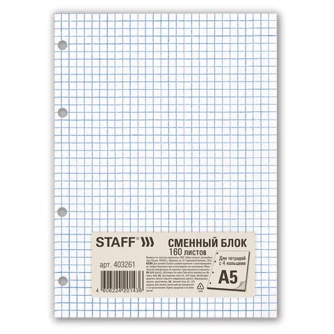Сменный блок для тетради на кольцах Brauberg Эко белый, А5, 160 листов, в клетку