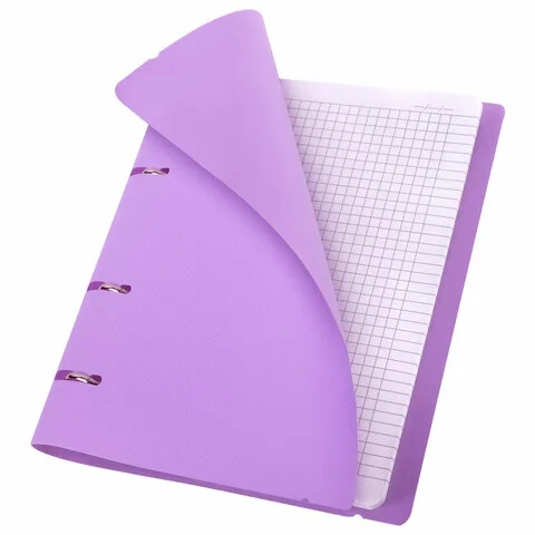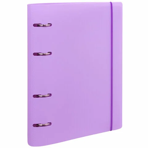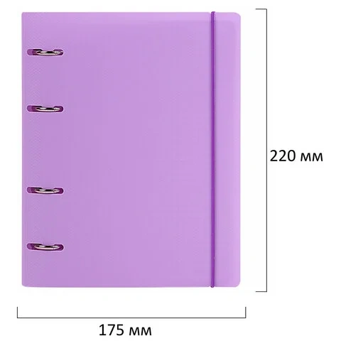 Тетрадь на кольцах А5 175х220 мм, 120 л., пластик, с резинкой, BRAUBERG, Сиреневый, 404620