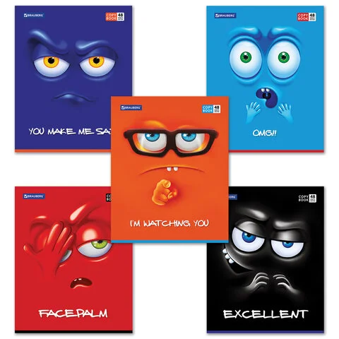 Тетрадь Brauberg Мордашка, А5, 48 листов, в клетку, на скрепке, мелованный картон