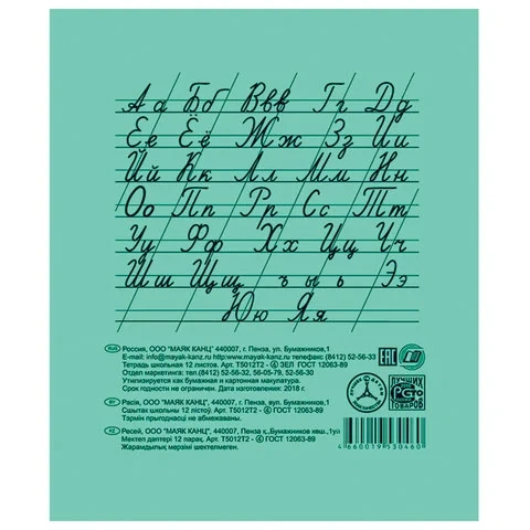 Тетрадь ЗЕЛЁНАЯ обложка 18 листов 'Маяк', офсет, клетка с полями, Т5018Т2 5Г