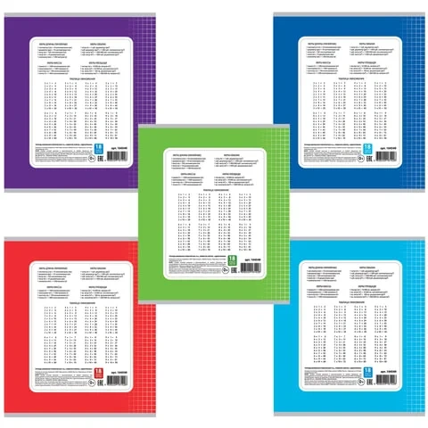 Тетрадь 18 л., ПИФАГОР, клетка, офсет №2 ЭКОНОМ, обложка картон, ОДНОТОННАЯ, 104549