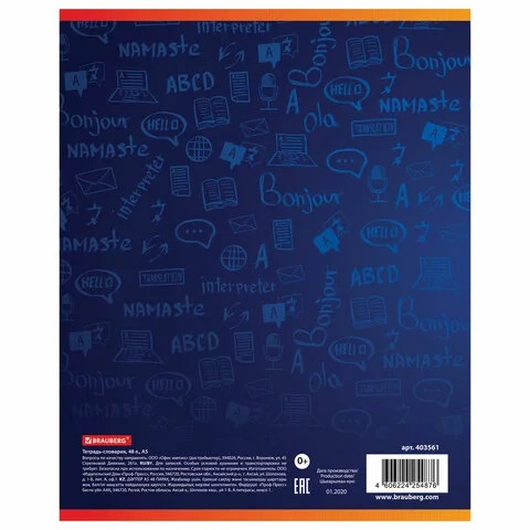 Тетрадь-словарик А5 48 л. BRAUBERG для записи иностранных слов, скоба, клетка, 403561
