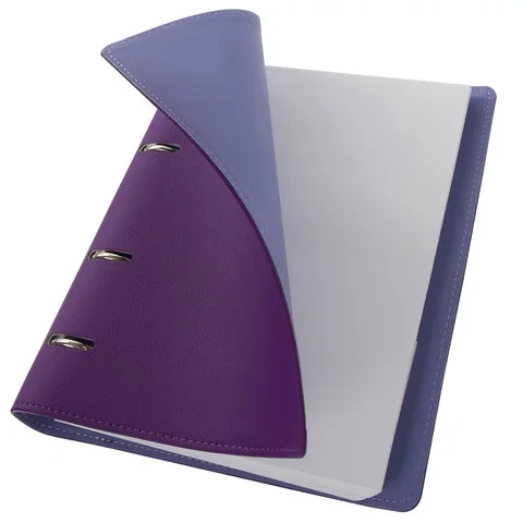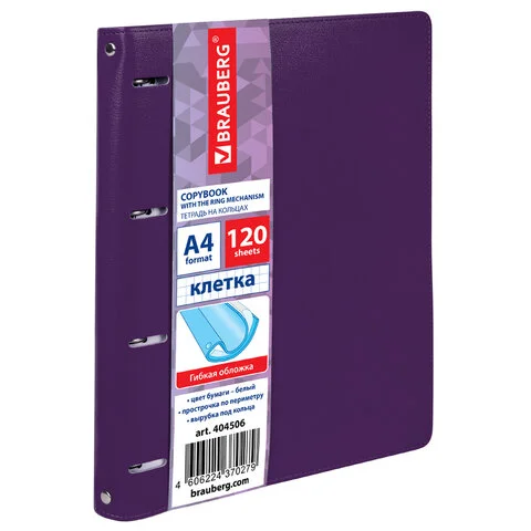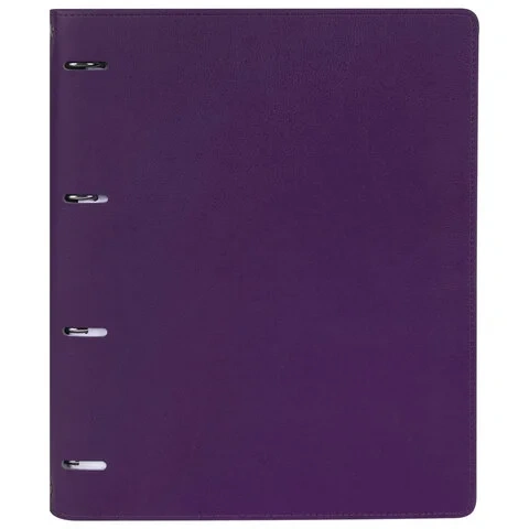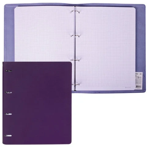 Тетрадь на кольцах БОЛЬШАЯ А4 (240х310 мм), 120 листов, под кожу, клетка, BRAUBERG 'Joy', фиолетовый