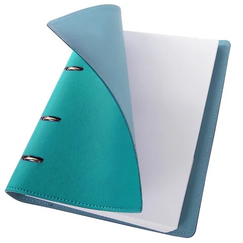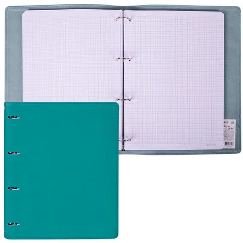 Тетрадь на кольцах БОЛЬШАЯ А4 (240х310 мм), 120 листов, под кожу, клетка, BRAUBERG 'Joy', бирюзовый/
