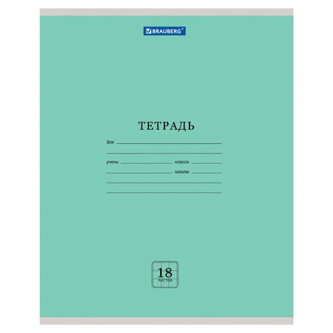 Тетрадь 18 л. BRAUBERG 'ЭКО', клетка, обложка плотная мелованная бумага, ЗЕЛЕНАЯ ПАСТЕЛЬНАЯ, 105675