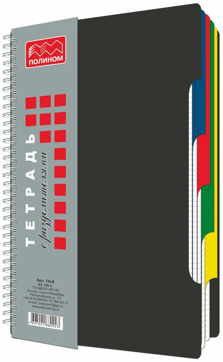 Тетрадь 120л, А5, кл, спираль, Полином, обл. пластик, с разделителями