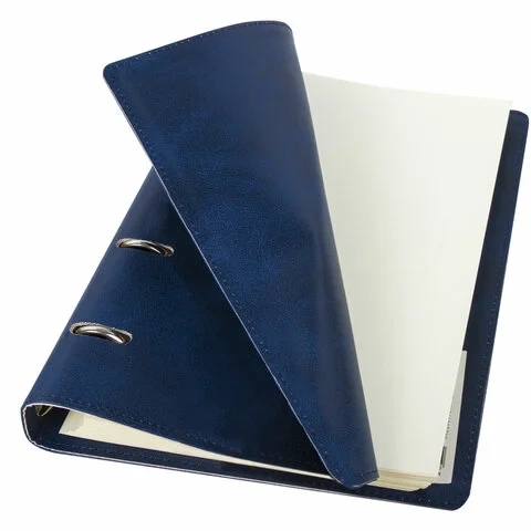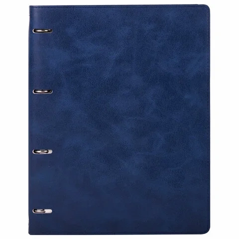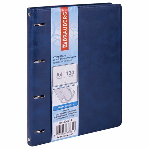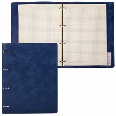 Тетрадь на кольцах БОЛЬШАЯ А4 (240х310 мм), 120 листов, под кожу, клетка, BRAUBERG 'Main', синий, 40