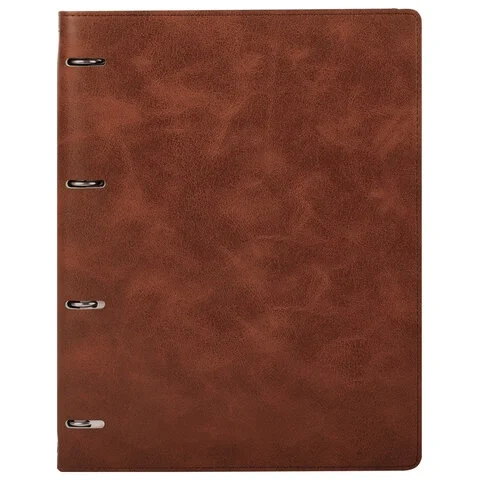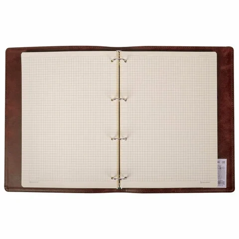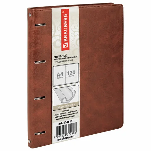 Тетрадь на кольцах БОЛЬШАЯ А4 (240х310 мм), 120 листов, под кожу, клетка, BRAUBERG 'Main', коричневы