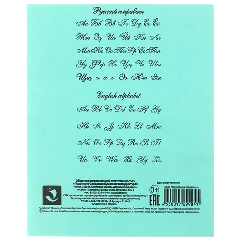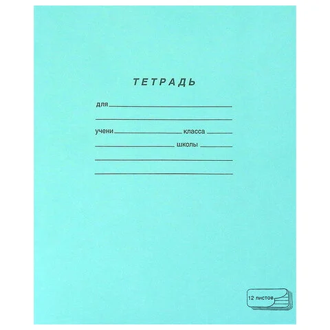 Тетрадь школьная Пзбм зеленая, А5, 12 листов, косая линия с полями, бумага