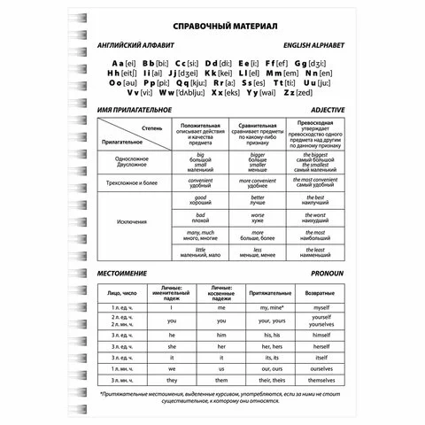 Тетрадь-словарик А5 48 л. BRAUBERG для записи английских слов, гребень, клетка, справка, 403564