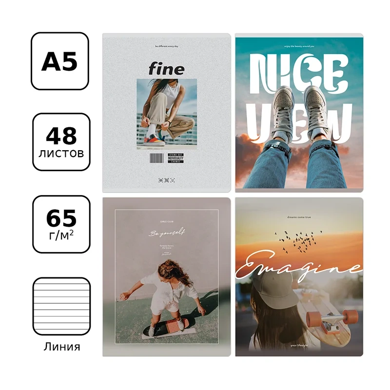 Тетрадь 48л., А5, линия BG 'Girl's club', глянцевая ламинация
