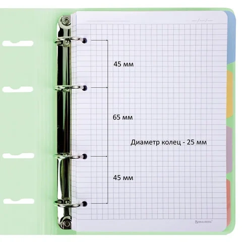 Тетрадь на кольцах А5 175х220 мм, 120 л., пластик, с разделителями, BRAUBERG, Зеленый, 404629