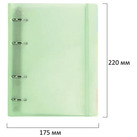 Тетрадь на кольцах А5 175х220 мм, 120 л., пластик, с резинкой, BRAUBERG, Салатовый, 404619