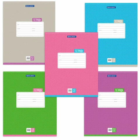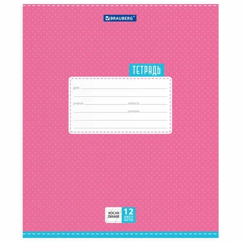 Тетрадь школьная Brauberg Точки, А5, 12 листов, в косую линейку, на скрепке, мелованный картон