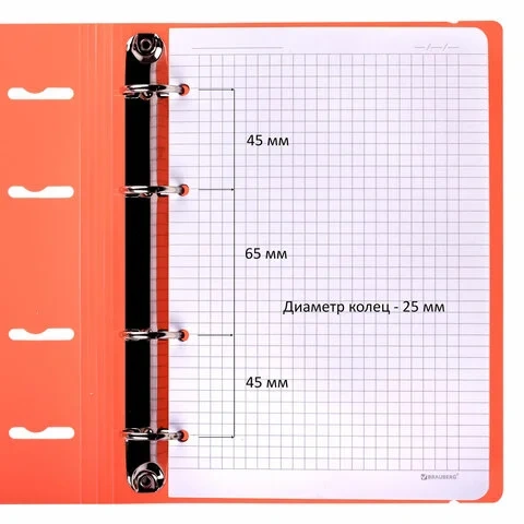 Тетрадь на кольцах А5 175х220 мм, 120 л., пластик, с резинкой, BRAUBERG, Коралловый, 404621