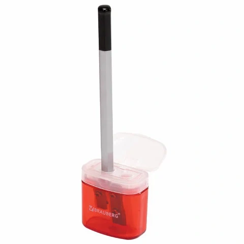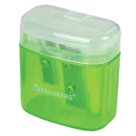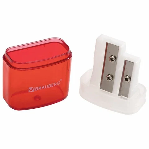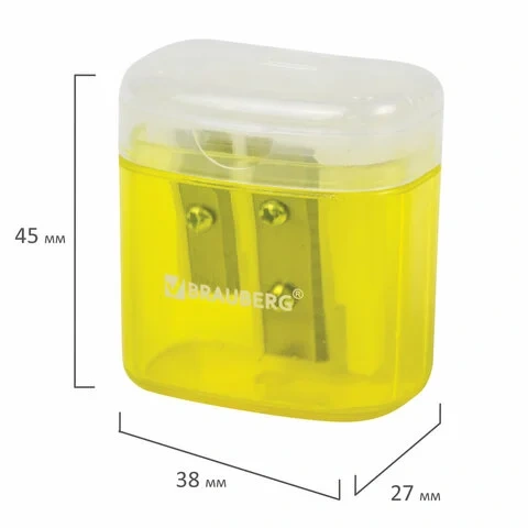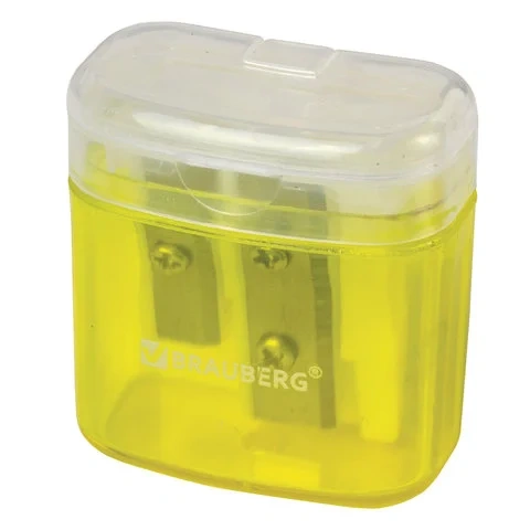 Точилка BRAUBERG 'Chief' с контейнером, пластиковая, прямоугольная, 2 отверстия, с крышкой, ассорти,