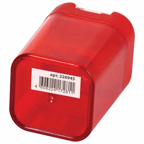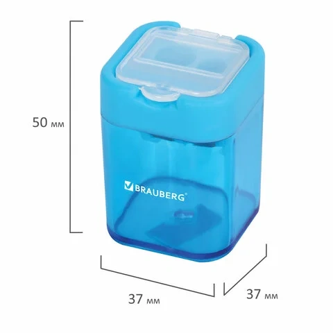Эргономичный корпус прямоугольной формы выполнен из пластика ярких цветов ассорти. Точилка оснащена двумя отверстиями для заточки карандашей разного диаметра. Острое стальное лезвие обеспечивает быструю и легкую заточку. Карандаш затачивается аккуратно, а опилки остаются в специальном контейнере. Размер - 50х37х37 мм.