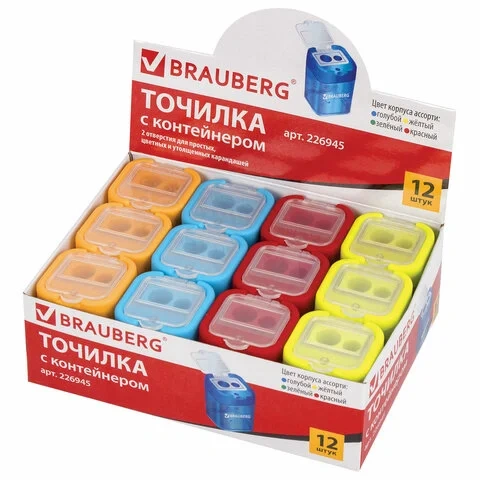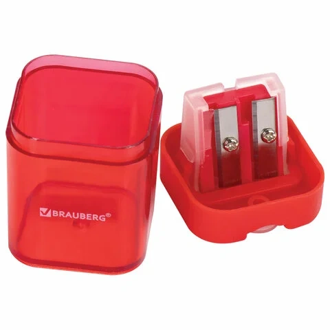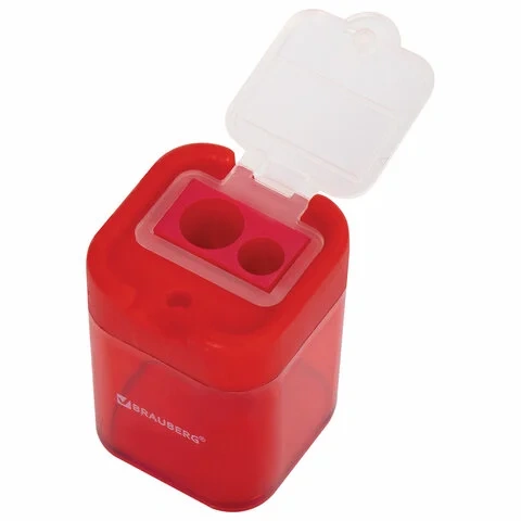 Точилка BRAUBERG 'Peak' с контейнером, пластиковая, прямоугольная, 2 отверстия, цвет ассорти, 226945