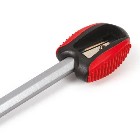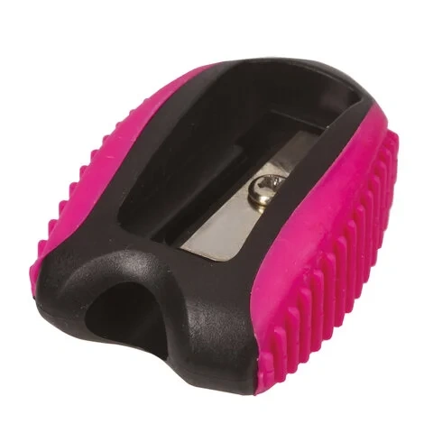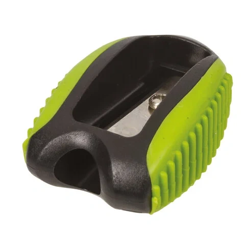 Эргономичный корпус выполнен из пластика с резиновыми вставками по бокам. Острое стальное лезвие обеспечивает быструю и легкую заточку. Карандаш затачивается аккуратно. Компактные размеры (16х25х37 мм) позволят поместить точилку в пенал, а благодаря интересной форме она не затеряется на парте или столе среди других принадлежностей.