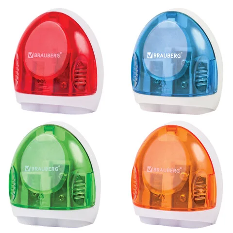 Точилка BRAUBERG 'Tern' с контейнером, пластиковая, овальная, 3 отверстия, цвет ассорти, 226939