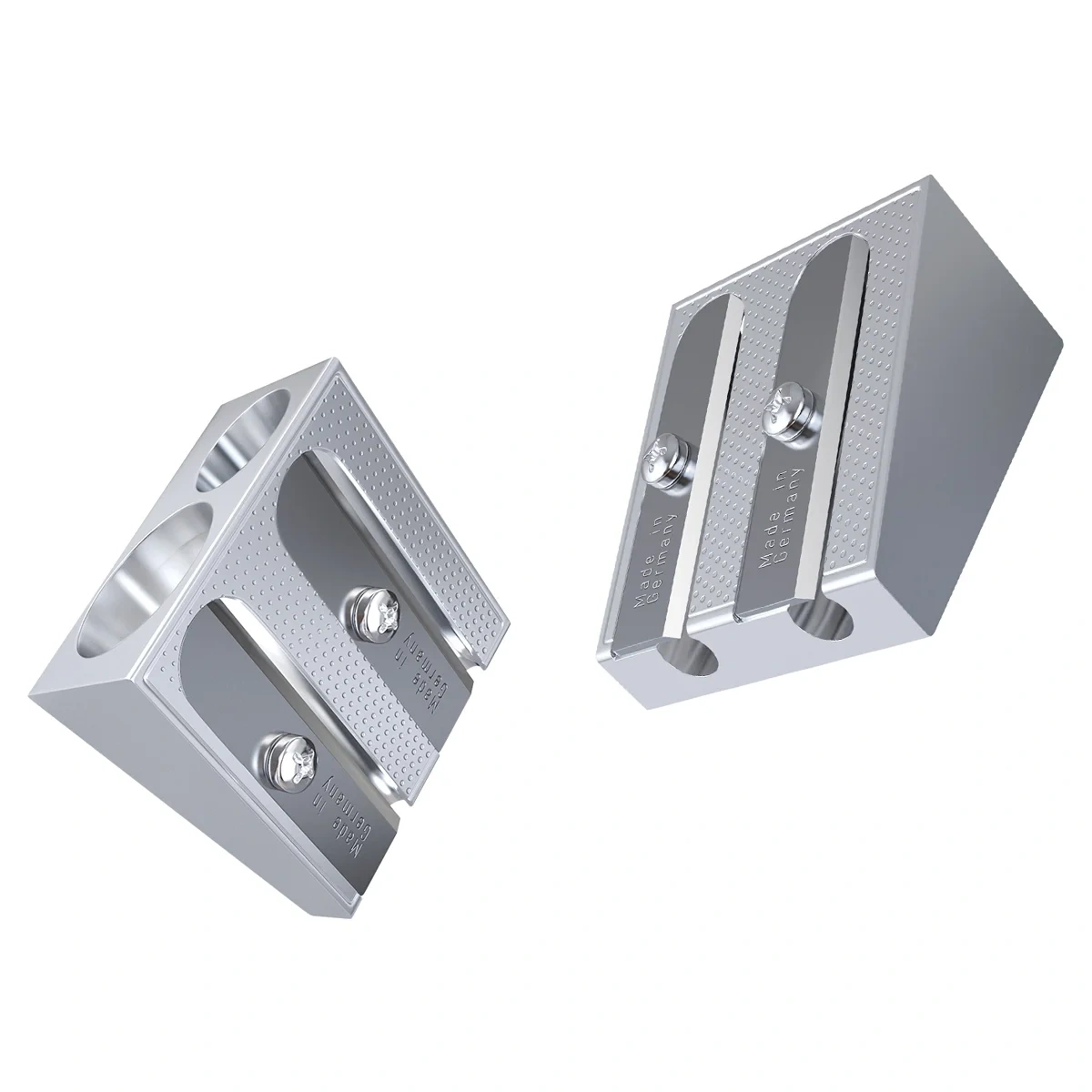 Металлическая точилка Berlingo из магниевого сплава. Лезвие из углеродистой стали, острое и устойчивое к повреждению, сделано в Германии. Два отверстия для заточки - обычных и утолщенных карандашей. Эргономичная форма. Идеально подходит для графитовых и цветных карандашей. Упаковка в картонный пенал. Индивидуальный штрих-код на каждой точилке.