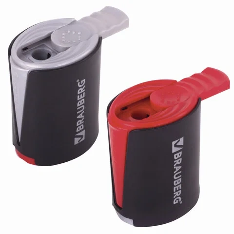 Точилка для карандашей Brauberg Delta 2 отверстия, с контейнером, с крышкой, ассорти