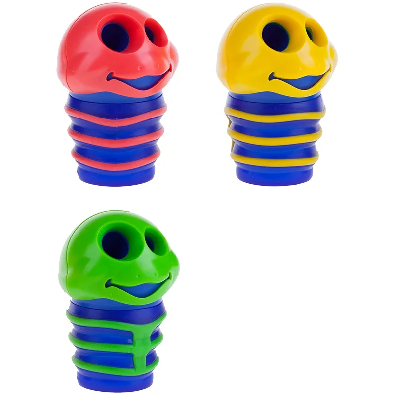 Точилка оригинального дизайна с двумя отверстиями для карандашей разного диаметра. Яркие цвета ассорти: розовый, оранжевый, синий, зеленый, сиреневый