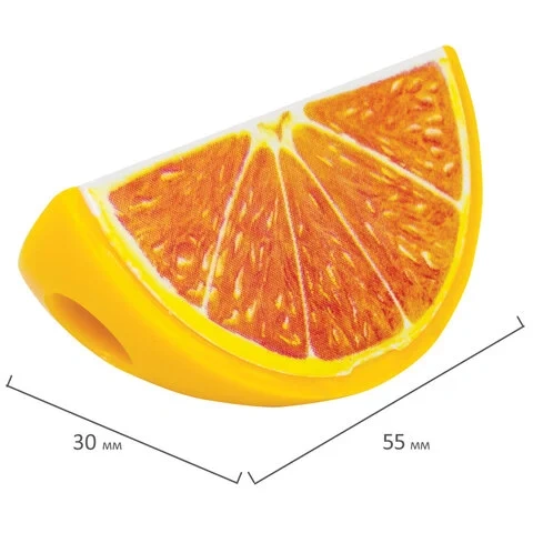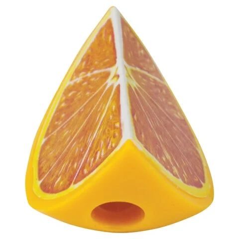 Эргономичный корпус в форме дольки фрукта выполнен из пластика. Острое стальное лезвие обеспечивает быструю и легкую заточку. Карандаш затачивается аккуратно, а опилки остаются в специальном контейнере.