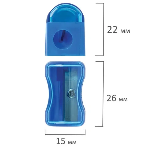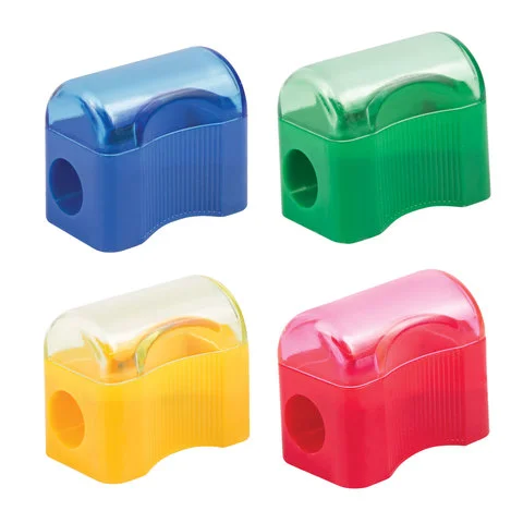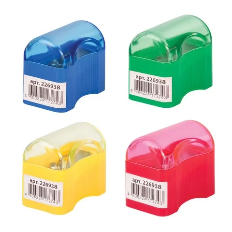 Эргономичный корпус прямоугольной формы выполнен из пластика. Яркие цвета ассорти. Острое стальное лезвие обеспечивает быструю и легкую заточку. Карандаш затачивается аккуратно, а опилки остаются в специальном контейнере. Размер - 26х22х16 мм.